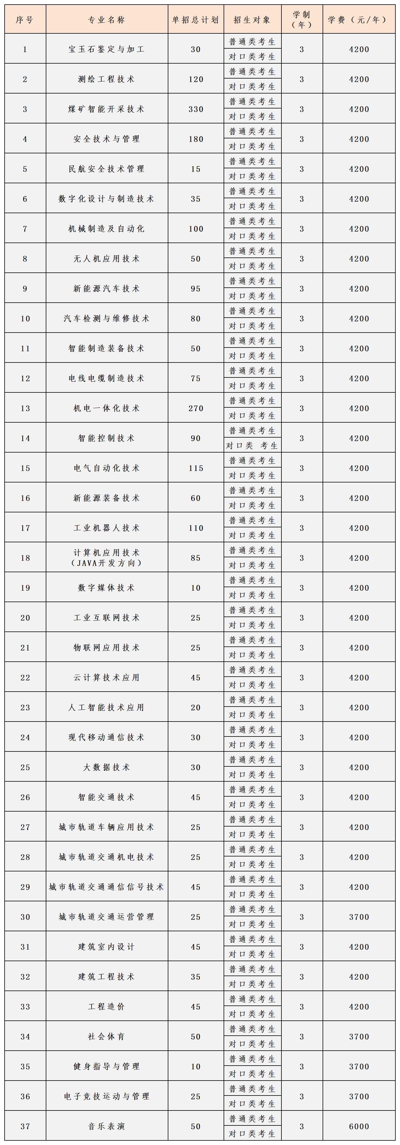 经省教育厅审批备案,2025年我校单独考试招生计划共计2500个,共37个专业和方向,招生专业及各专业招生总计划详见下表。