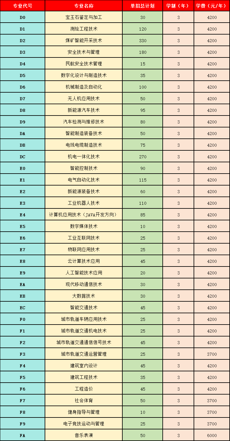 河南工业和信息化职业学院2025年单独考试招生志愿填报专业代号对照表