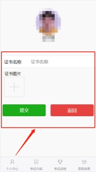 3.依次填写证书名称(按照如“电工中级工”“省级技能竞赛三等奖”等格式填写)、上传证书扫描件或照片(注意图片大小应控制在5M以内,支持上传多张图片),上传完成后,点击“提交”按钮即可完成证书上传,点击“返回”按钮可查看已上传的证书信息。